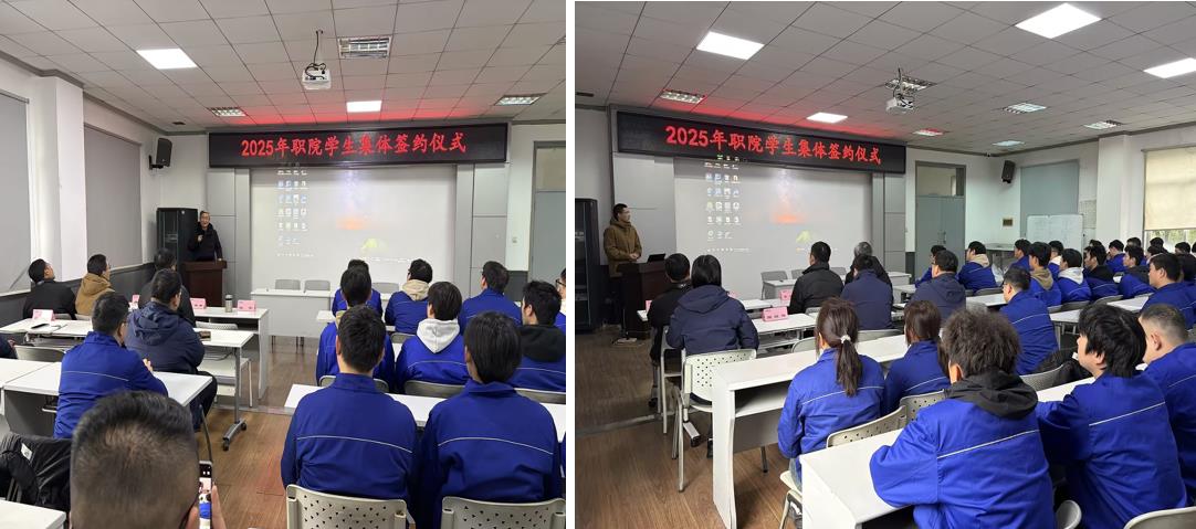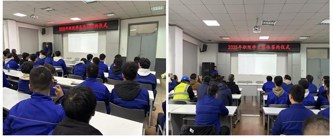 2025年12月23日,特力液壓公司聯合職業院校,在培訓教室舉行了“職院實習生就業簽約儀式”,全體實習生參加,邀請了學校校長、副校長、機電學院院長、車間主任等共計60余人參與了此次活動。